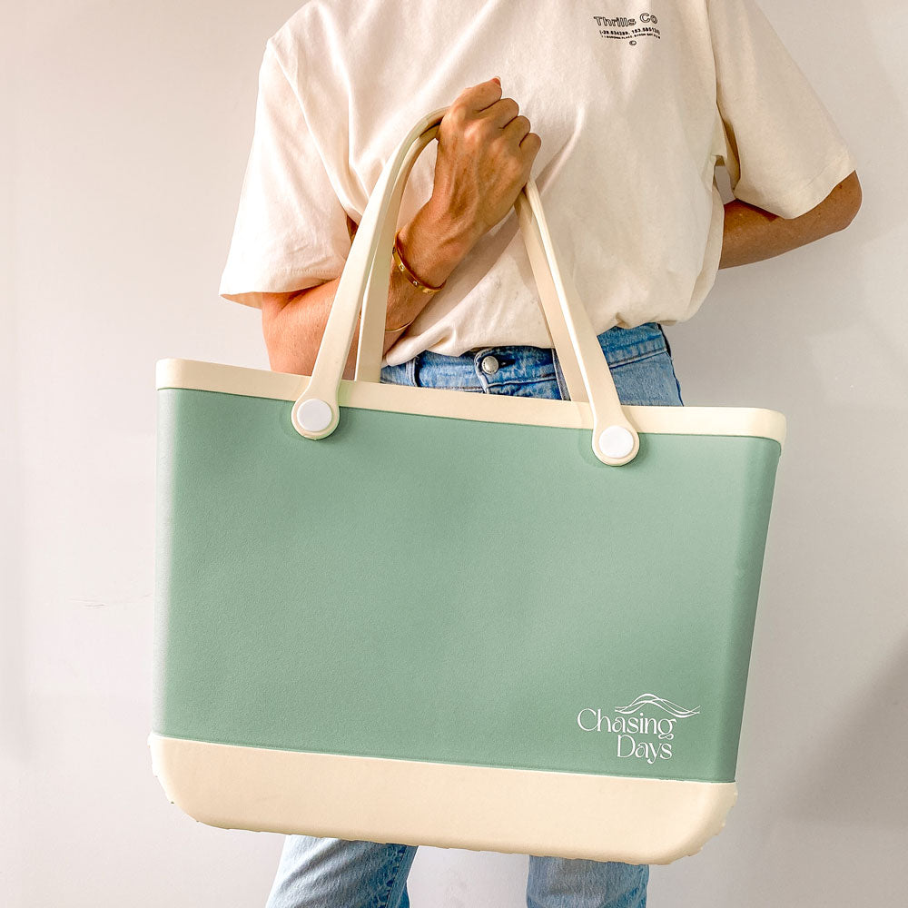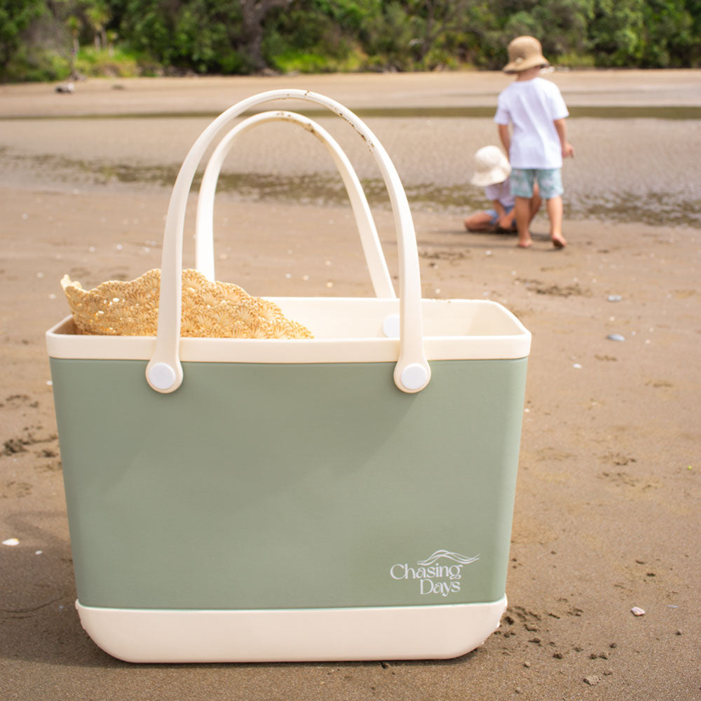 Lightweight and spacious means you can pack everything for your day out, from towels and swimwear to muddy soccer boots and snacks. This large tote bag handles sand, mud and muck keeping your things safe and dry, just hose it off at the end of the day to be back to beautiful.